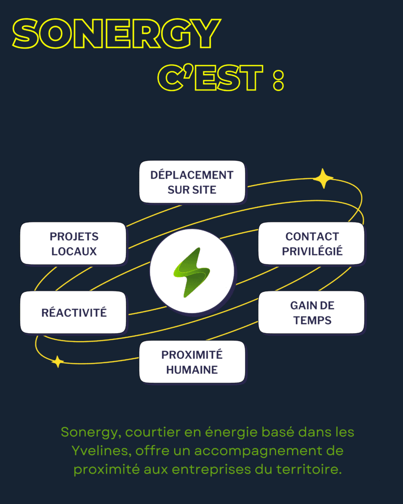 C’est précisément la mission de Sonergy, courtier en énergie local implanté à Saint-Germain-en-Laye, qui accompagne les professionnels dans l’optimisation de leurs contrats d’électricité et de gaz. Grâce à une expertise pointue des marchés de l’énergie et une approche 100% personnalisée, Sonergy vous aide à reprendre le contrôle de votre budget énergétique.