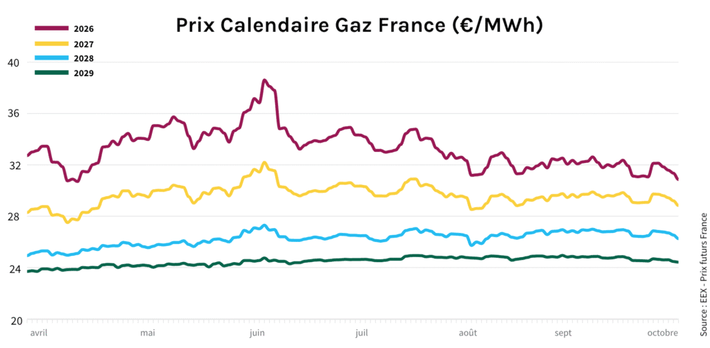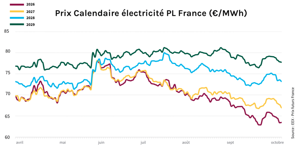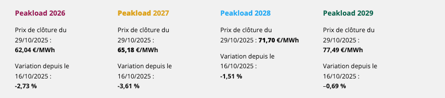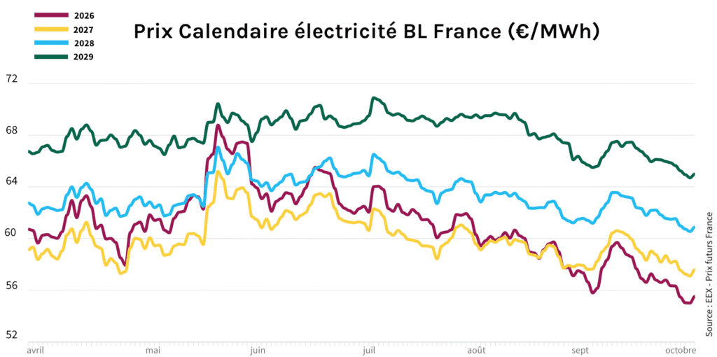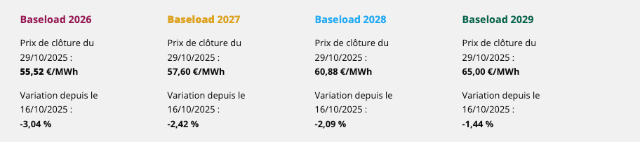 Cette évolution s’explique par une offre globalement fluide et une demande encore modérée, malgré le début de la saison froide. La production nucléaire et hydraulique reste solide, apaisant ainsi les tensions sur le marché.