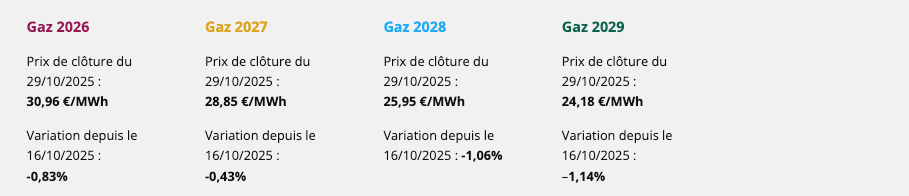 Les prix du gaz enregistrent une baisse modérée cette semaine, dans la continuité du mouvement observé depuis octobre.