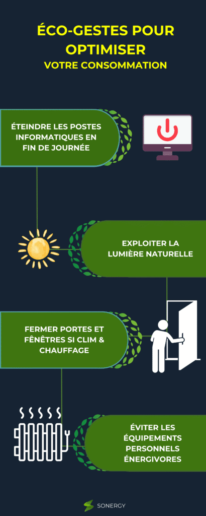 Impliquez vos équipes dès le diagnostic. La sensibilisation fonctionne mieux quand les collaborateurs comprennent l’impact réel de leurs actions sur la facture globale.