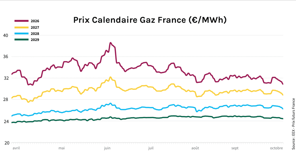 - le gaz montre des signaux contrastés entre baisse des prix et enjeux d’approvisionnement ;